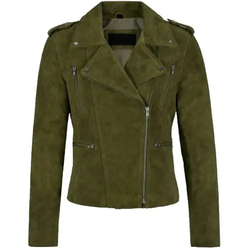 Women’s Lola Olive Green Biker Jacket – Genuine Goat Suede Leather